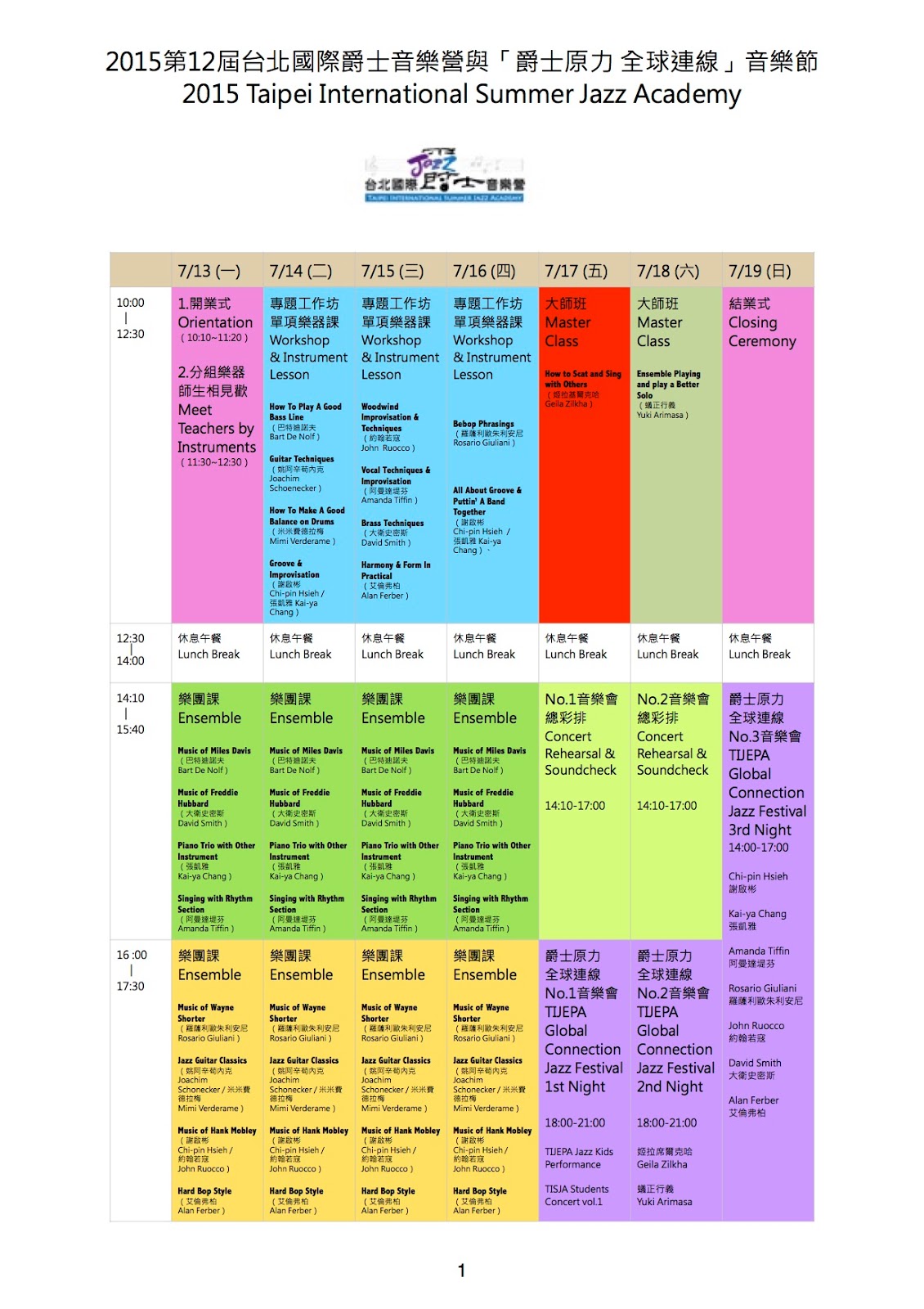 最完整的活動行程都在這裡!期待嗎?2015第十二屆台北國際爵士音樂營就要來到!
